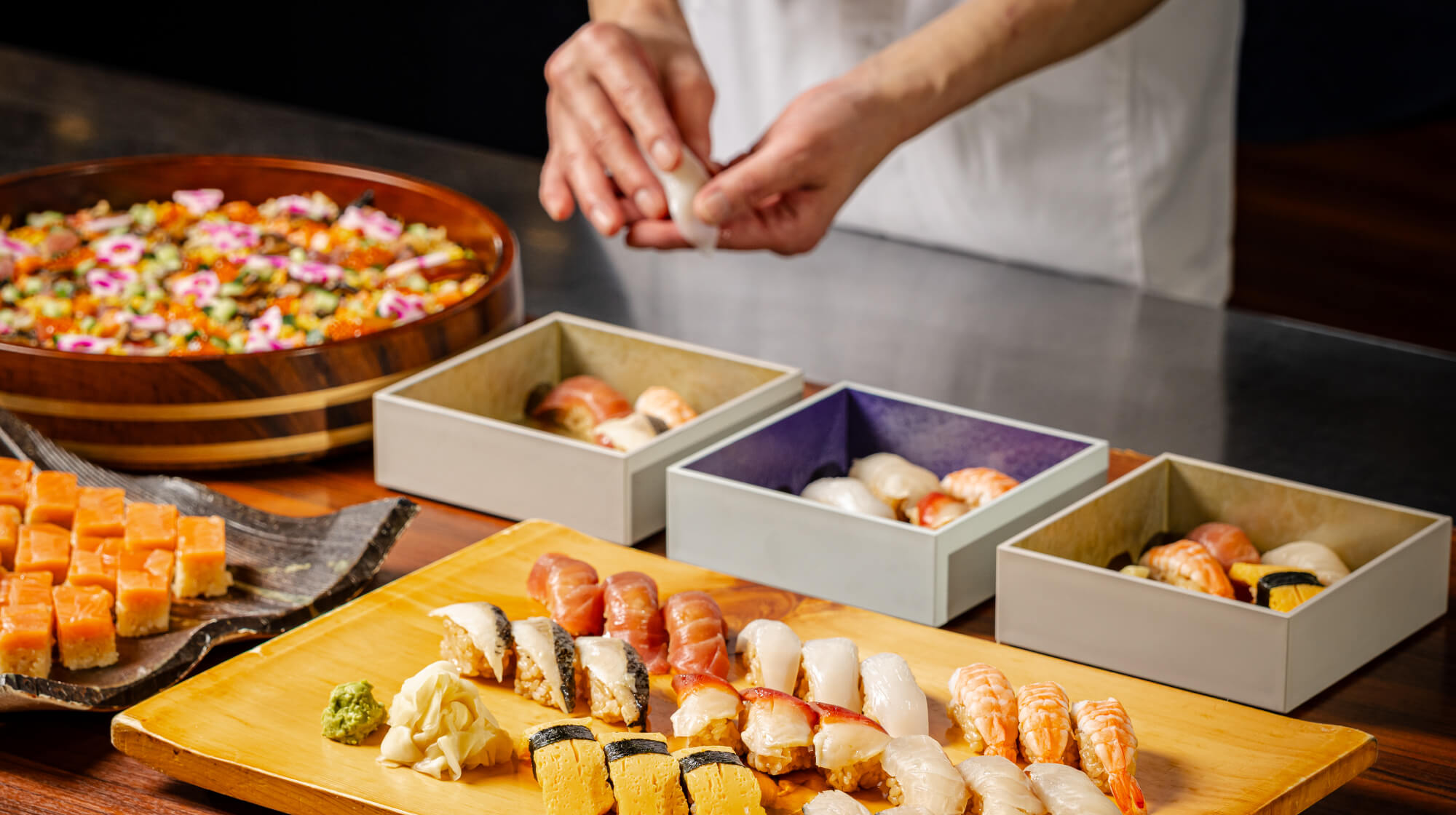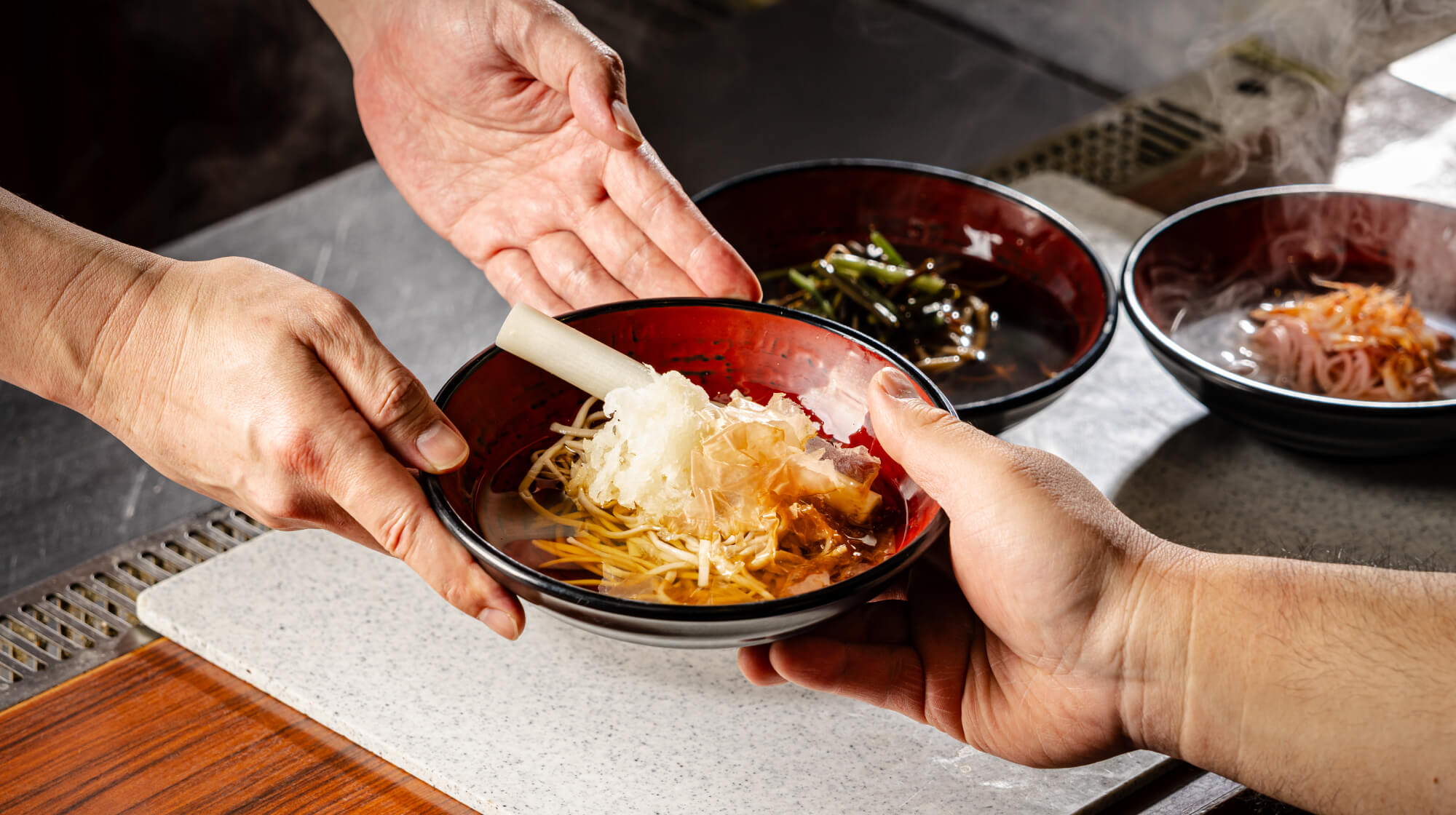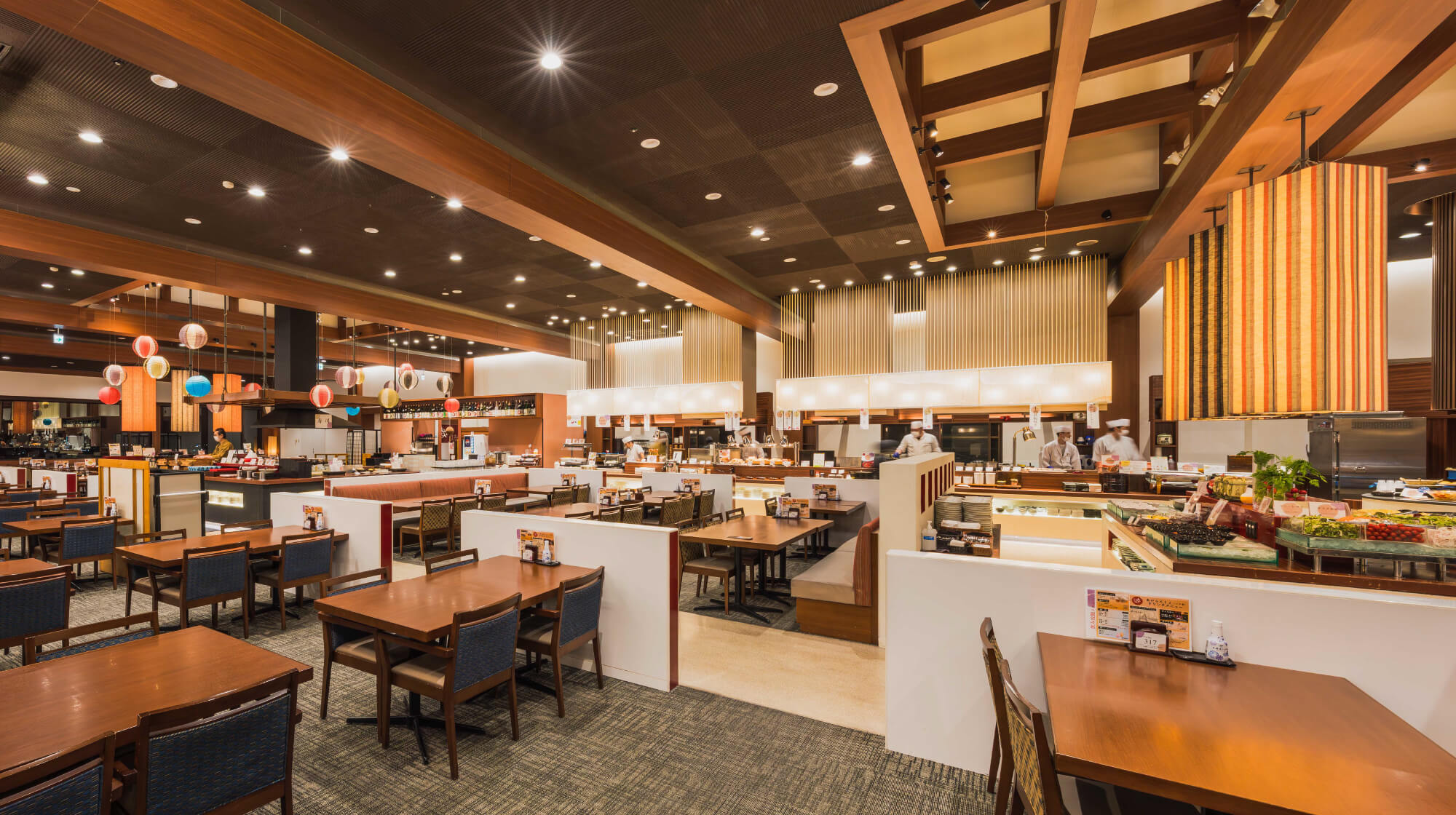 厳選された食材を使用した天ぷらや、握り寿司、鉄板焼き等をその場でお作りしてご提供しております。ライブ感あふれるオープンキッチンのお料理ブースは、厳選食材が料理されていくのを眺められるのも、楽しみのひとつ。「見て楽しい」「食べて美味しい」、あがらんしょのお料理を、ご堪能くださいませ。