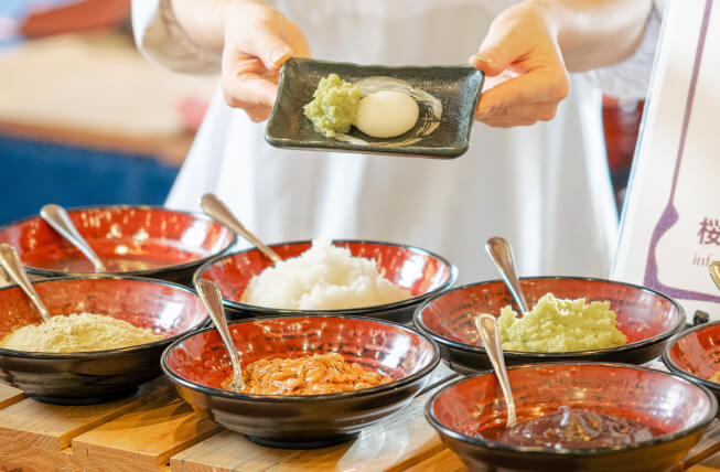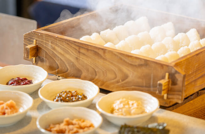 また、地元会津や東北の素材を使ったおむすびやヨーグルトもお出ししています。ぜひ、朝のあがらんしょもご体験ください。